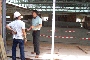 En aquests moments s'està treballant en la impermeabilització de la coberta, en els remats entre la façana i la coberta i en les façanes. També es continua endavant amb els treballs d'instal·lacions de ventilació, electricitat, energia solar, megafonia, etc i, entre d'altres actuacions, s'estan col·locant les fusteries d'alumini exterior. Properament s'han d'iniciar els treballs d'urbanització de l'entorn més immediat de l'equipament.