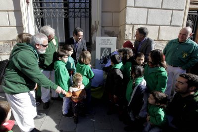 Just després de la signatura del conveni s'ha fet l'acte de descoberta de la placa commemorativa dels èxits dels castellers de Sabadell a la plaça de Sant Roc. Tal i com ha dir l'alcalde "sou una gran colla castellera i això s'ha de veure a la plaça de l'Ajuntament, on heu aconseguit les vostres gran fites".